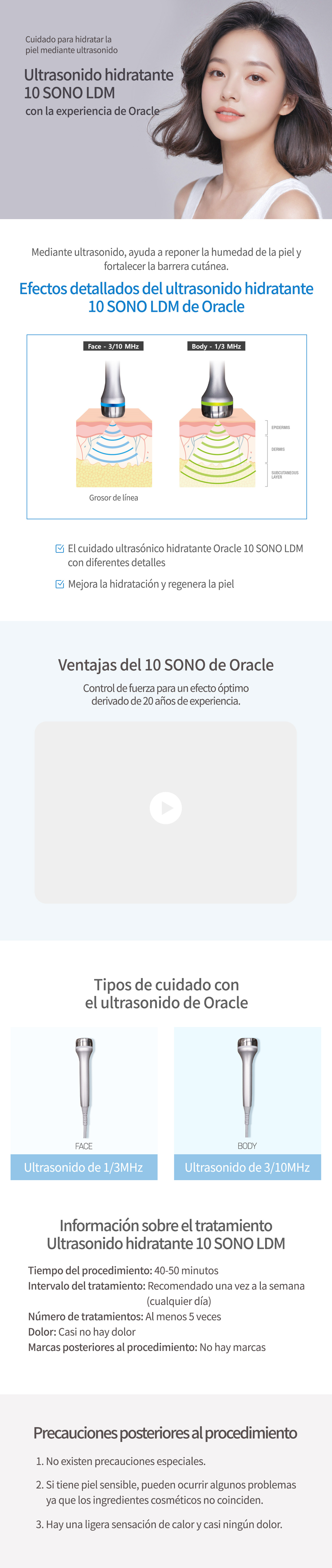 10SONO LDM tratamiento hidratante con nanoburbujas, con la experiencia de Oracle Este es un tratamiento humectante LDM que utiliza ultrasonido para ayudar a reponer la humedad de la piel y fortalecer la barrera cutánea.